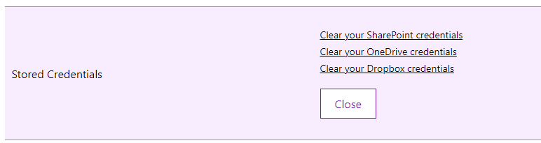 - Select the option to clear stored credentials for the specific cloud service you want to reset.